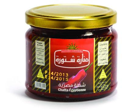الشطة المصرية المقدمة من منارة شتورة هي عبارة عن صلصة حارة مصنوعة من الفلفل الحار الطازج و مخلوطة بالزيت. هذه الشطة الرائعة يمكن اضافتها عمليا على كل شيء! و هي تستخدم عادة كتوابل في الشطائر، أطباق الحمص، أو كمنكه للطعام.